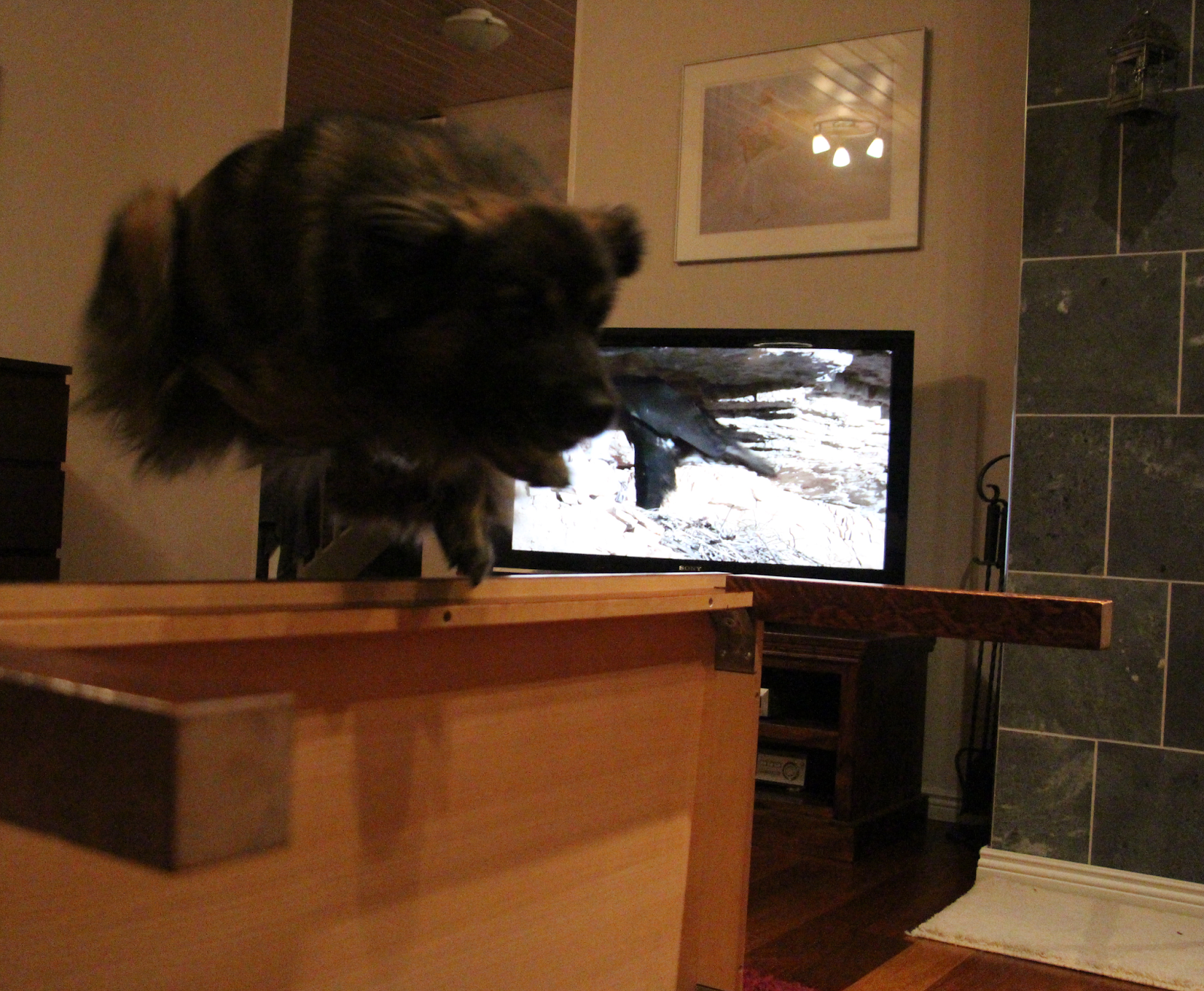 Kotiläksyjäkin ehdittiin viikonloppuna vähän tehdä ja koska en muuta hyppyestettä äkkiseltään keksinyt, niin sohvapöytä sai toimittaa sen virkaa.