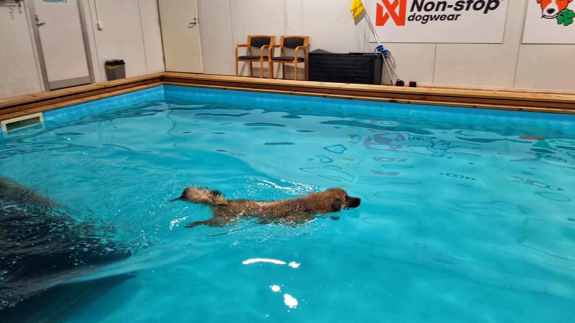 Viime viikon tiistaina käytiin uimassa. Otettiin tällä kertaa aika rauhassa ja koirat ui vaan leluja hakien puolisen tuntia ilman pidempiä vetoja. Kivaa näytti olevan!