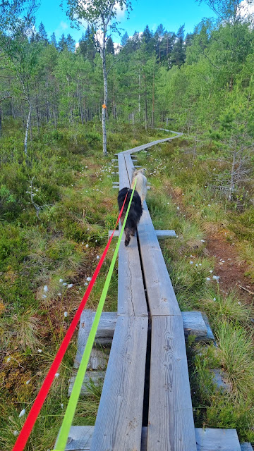 Torstaina pikaiset bh-treenit todella kuumassa kelissä. Tehtiin ilmoittautuminen, paikkis sekä eestaas seuruu hihnassa henkilöryhmällä ja jättävät. Ihan hyvää tekemistä helteestä huolimatta.
