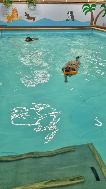 Sunnuntaina aloitettiin aamu uinnilla. Ihan parasta liikuntaa papparaiselle ja Sintun lonkille ja kuinka kivasti tuo väsyttääkää koiria =)